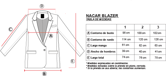 Blazer confeccionado en creppe twill con cuello y solapa clásica. Presenta hombreras que estructuran la silueta, bolsillos ojal con tapa y cruce simple con botón a tono. Los tajos en puños y la abertura en la espalda aportan un acabado prolijo y elegante. Íntegramente forrado.